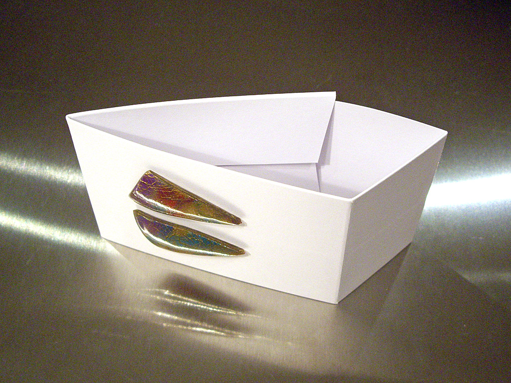 5. Cut the sides and the end with the smaller rectangle into tapered flaps as shown in the diagram.