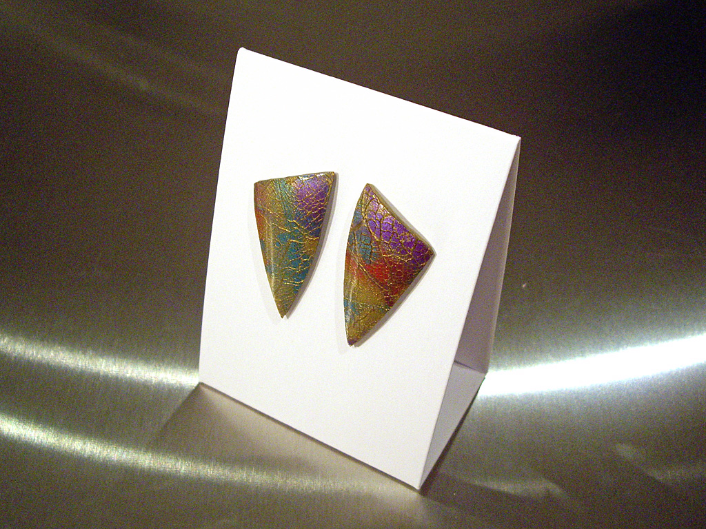 A while ago I designed my own earring display cards because I couldn’t find any with the features I wanted. A couple of students at my recent Polymer Clay Surface Design Techniques class were interested in how to make them, and since I’d had a vague idea of sharing the technique anyway I thought it was finally time to take the plunge (or a tiptoe!) into the world of social media and provide the information as a blog post.